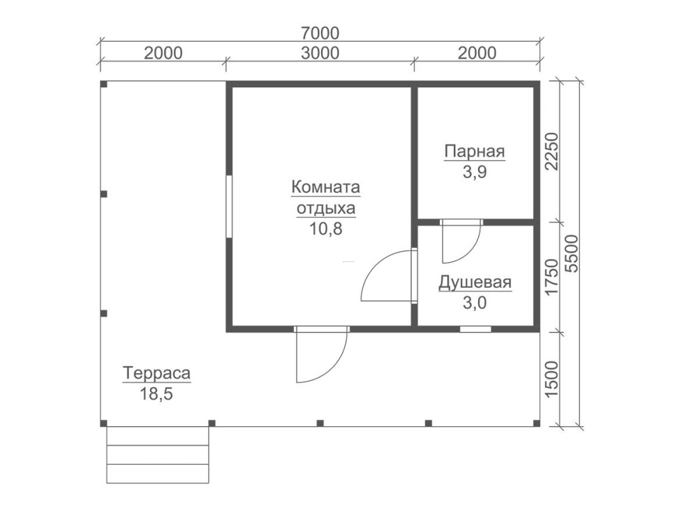 | Двери | Входная- металлическая, утеплённая (Россия). Межкомнатные- филёнчатые. В парную- клиновая (банная). | Отсутствуют. |